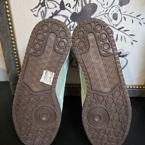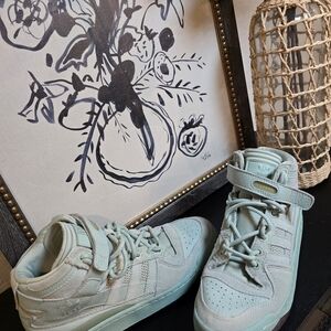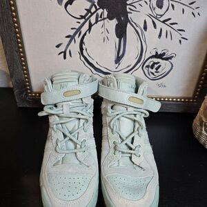 Stylish and comfortable, these Adidas high-top sneakers in mint green are perfect for active kids. Featuring a secure strap and classic design, they offer both support and style.