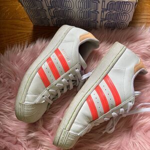 Adidas Original Superstar in White and Signal Pink size 6.5 Womens VGUC