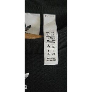 This Adidas Rich Minsi Sweatshirt is a stylish crewneck designed for women in size XS. It features a unique animal print pattern in black, with long sleeves and a pullover closure for easy wear. Made from 100% Cotton.