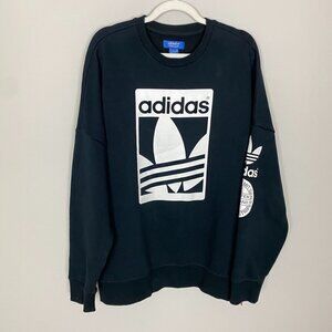Adidas Originals 3 Stripes Black Crewneck Sweatshirt Side Zip Mens XL Logo