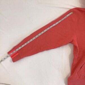 • Sleeve Detail: The right cuff features three vertical stripes in a slightly brighter color (appears to be a neon or vibrant coral/pink).