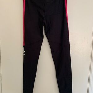 Adidas Originals Black Leggings Women’s Medium – Pink 3-Stripes, Trefoil Logo, M