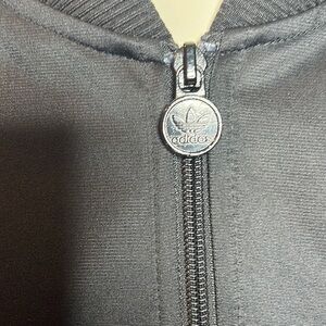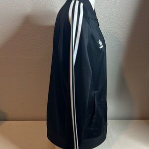 Stay classic and sporty with this Adidas Originals black zip-up track jacket in size Medium. Featuring the iconic white 3-stripe design along the sleeves, embroidered Adidas trefoil logo, and bold Missouri State Bears patch on the chest. Ribbed collar, cuffs, and hem provide a snug fit. Made in Vietnam. Great condition – perfect for fans, students, or anyone who loves retro athletic style.