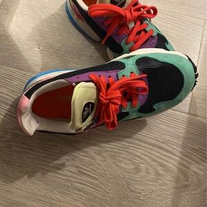 Step into bold retro vibes with these Adidas Falcon ’90s Rave Trainers. Inspired by rave culture and Y2K fashion, these chunky sneakers feature a mix of mesh and suede overlays in an eye-catching colorway that screams vintage flair. The wide, cushioned sole adds all-day comfort while delivering that classic dad-shoe silhouette.