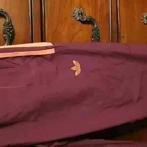 Adidas Originals Flamestrike Woven Trackpants sizez Small. Maroon with Orange trefoil and stripes. Windbreaker like material.