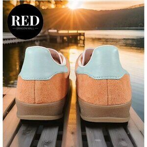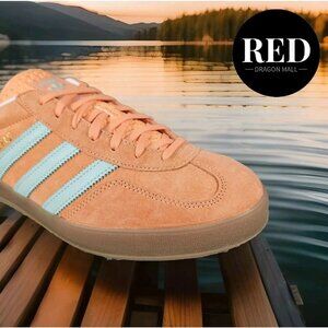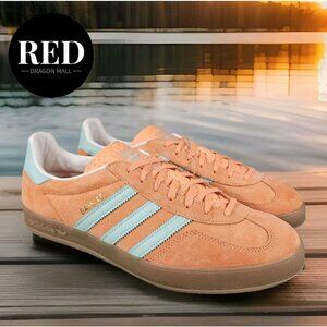 Elevate your sneaker game with these Adidas Originals GAZELLE INDOOR IH7499 Easy Orange Clear Mint Gum sneakers. The lace-up closure and suede upper material provide both comfort and breathability, making them perfect for any season. These sneakers feature a solid pattern with an eye-catching orange color and clear mint gum outsole.