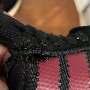 Uppers in good condition with one flaw area at shoestring eyelet at top by ankle on the outer right shoe has small area where stitching has come loose but could be fixed or the are very wearable as is . (See last picture) Shoes priced accordingly for flaw .