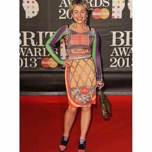 Adidas Originals Jeremy Scott jukebox Dress x29867 Retro Art to Wear Small. New with tag, no flaws. Measurements are approximates only. Unlined. Has stretch