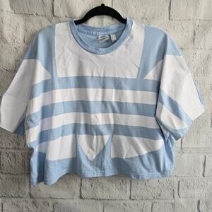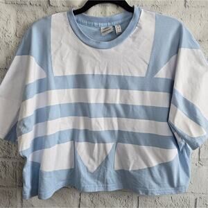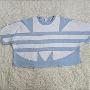 Adidas Originals Light Blue Large Logo Graphic Cropped Tee XL