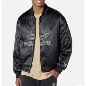 Adidas Originals Men's Adicolor Trefoil Black Satin Bomber Jacket Black XXL NWOT Streetwear Retro Style Y2K 80s 90s Outdoor Oversized