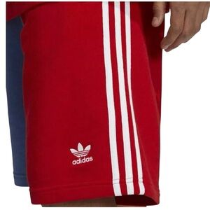 NWT Adidas Originals Men's Colorblocked 3 Stripes Trefoil Shorts. Size: Small. Colors: Red Navy Blue/White. Regular fit. Drawcord on elastic waist. Side zip pockets. These adidas shorts take a familiar silhouette and remix it with fresh details. Soft French terry ensures maximum comfort that invites all-day wear. An embroidered Trefoil connects you to adidas heritage, just like the 3-Stripes down the sides. 100% cotton. Excellent condition.