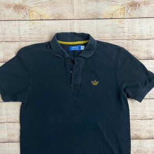 Adidas Originals Mens Small Navy Blue Polo Shirt Gold Trefoil Logo Yellow Trim