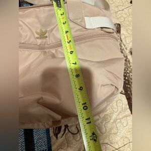 This Adidas tote bag in a soft cream color is designed for those who appreciate simplicity and functionality. Featuring a relaxed, slouchy silhouette and carrying straps, and crossbody strap. It offers a minimalist style perfect for everyday use. Its spacious interior makes it an ideal carry-all for your daily essentials. Good condition. One small mark didntvtry to remove it. Still in good condition. See picture 12 Thanks for looking!