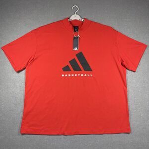 Adidas Originals Shirt Mens 2XL XXL Red Relaxed Fit Printet Logo Basketball Tee