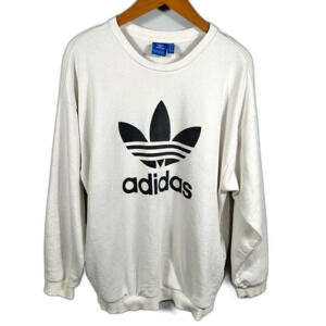Adidas Originals White Cozy Trefoil Crewneck Sweatshirt With Pockets Size Medium