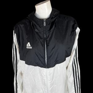 Adidas Originals Windbreaker Jacket Black White Hooded Zip Up Men’s M Polyester