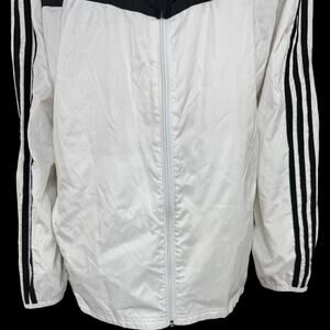 This item is an Adidas Originals Black White Hooded Windbreaker Jacket. It is a size Men’s Medium. This item is in good pre-owned condition with minor marks shown in photos.