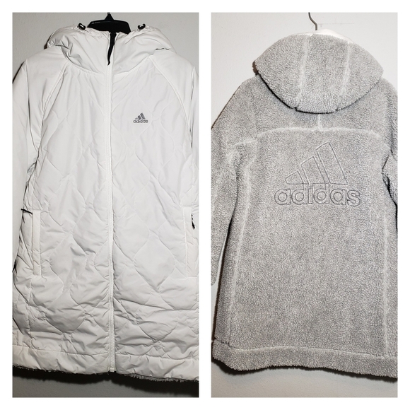 Adidas Originals Women's Reversible Sherpa Jacket White Gray Size small