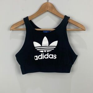 sporty and stylish women bra. Made in comfortable cotton with a bit of stretch, this snug-fitting bra features a U neck and an elastic band at the hem, and bold white Trefoil for an authentic look.