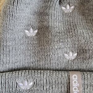 Adidas Originals Trefoil Logo Gray White Beanie Hat Cable Knit Embroidered New.