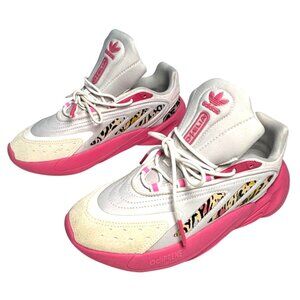 Adidas Ozelia Womens Sneakers Size 7 White Pink Leopard Ortholite Adiprene Run
