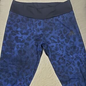 Adidas Performance Leggings Tights Navy Blue Animal Print Three Stripes Logo