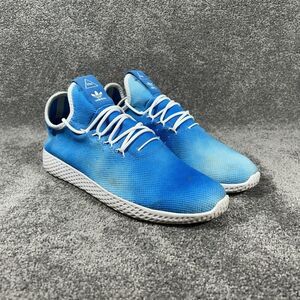 The Adidas Pharrell Williams x Tennis Hu DA9618 Mens Size 11 Icy Blue Running Shoes are a stylish and comfortable option for active men. Featuring a lace-up closure, rubber outsole, and foam insole, these sneakers are perfect for running, tennis, and casual wear. The bright blue color scheme and solid pattern add a pop of color to any outfit, while the low-top shoe shaft style offers a classic look. With a focus on comfort and performance, these athletic shoes are a great choice for the summer, fall, and spring seasons.