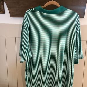 Adidas Pinehurst Golf Dri Fit Polo in green and white stripe with classic Pinehurst stitched logo