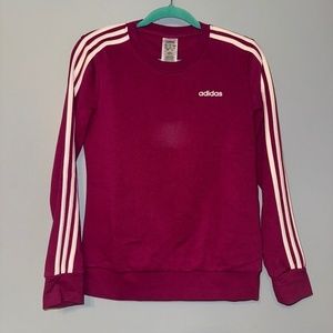 Adidas Pink Essentials 3 Stripes Pullover Sweatshirt Mulberry Magenta Size Small