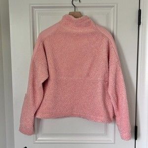 Adidas Pink Sherpa Pullover Sweatshirt Teddy Jacket Sz Small High Neck Oversized