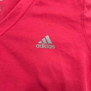 Stylish Adidas V-neck tee. Perfect for athletic or casual wear. Features iconic logo.
