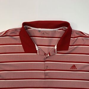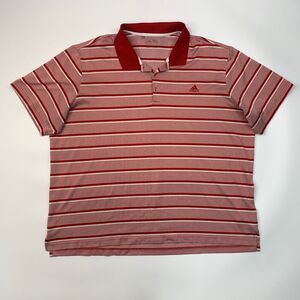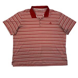 ADIDAS POLO SHIRT MENS 2XL RED WHITE COLLARED STRIPED LIGHTWEIGHT PERFORMANCE
