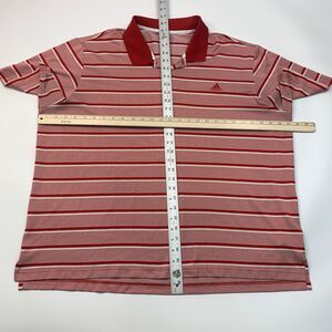 Adidas Polo Shirt Mens 2XL Red White Collared Striped Lightweight Performance