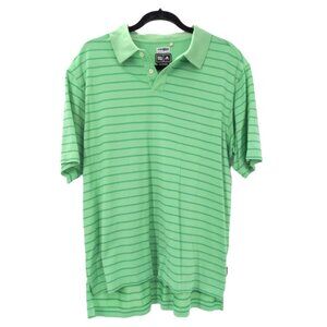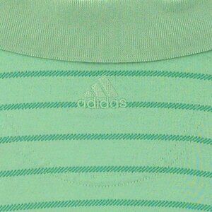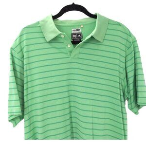 Adidas Polo Shirt Mens L Green Striped ClimaLite Mercerized Cotton Blend Golf