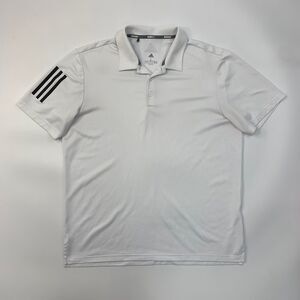 Adidas Polo Shirt Mens L White Floating 3 Stripes Short Sleeve Performance Golf