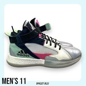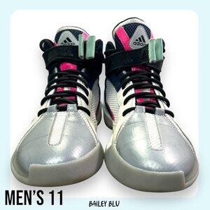 Elevate your basketball game with the Adidas Posterize Trifecta basketball shoe. This stylish high-top sneaker features a multicolor design with reflective accents to keep you looking fresh on the court. The shoe is made with a durable rubber cleat and a comfortable fit, perfect for activewear.