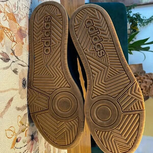 Adidas brand Hoops style sneakers in a mid height. Men’s 10.5, black on black, tan tread.