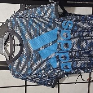Adidas Primeblue Blue Black Logo Tee Shirt NWT XL.