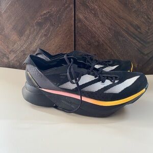 Adidas Pro 3’s, barely worn, great condition for racing shoes. Experience top-tier performance with these Adidas athletic shoes, featuring a sleek black and white design. Engineered for high performance, they offer a modern look with textured surfaces and studded soles for optimal grip.
