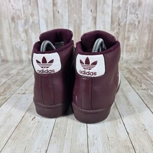 Keywords: Adidas, Pro Model, High Top Sneakers, Maroon Sneakers, White Stripes, Athletic Shoes, Women's Shoes, Size 4, Leather Sneakers, Casual Shoes, Streetwear, Adidas Shoes, Shell Toe, Fashion Sneakers