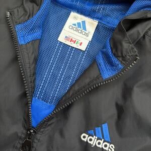 Vintage Y2K Blue & Black Striped Adidas Pullover Hooded Windbreaker