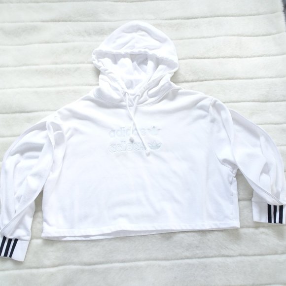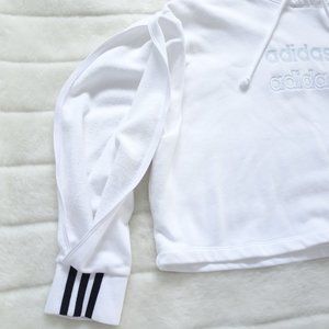 Adidas Pullover White Crop Sweatshirt Large Oversize with split sleeve.
