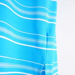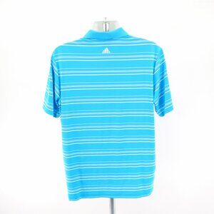 Adidas Puremotion Teal Striped Large Collared Polo Shirt Short Sleeve Polyester