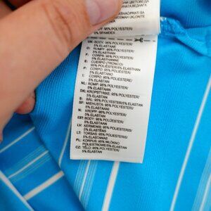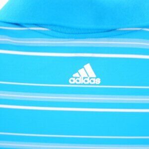 Adidas Puremotion Teal Striped Large Collared Polo Shirt Short Sleeve Polyester Elastane
