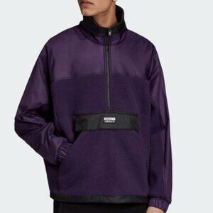 Adidas Purple Black Adult 1/4 Zip Up Pullover Sherpa Jacket Large