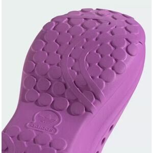 These Adidas sneakers feature a bold, sculptural design with a vibrant purple color and a chunky platform sole. The slip-on style offers convenience, while the smooth, seamless upper provides a modern, minimalist look. A small white Adidas trefoil logo adds a touch of iconic branding to the top of the shoe.