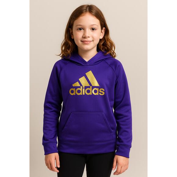 Adidas Purple Pullover Hoodie Girls Size M (10/12) Gold Logo Activewear