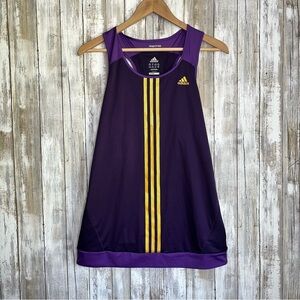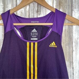 Stylish Adidas tank top in purple with yellow accents. Perfect for workouts or casual wear.