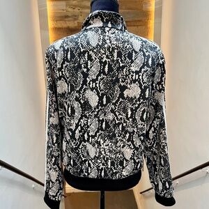 🌸 An eye-catching allover python-print pattern remasters the design for the present day. A stand-up collar brings a level of sophistication to this comfortable yet stylish look. A minimum of 70% of this product is a blend of recycled and renewable materials