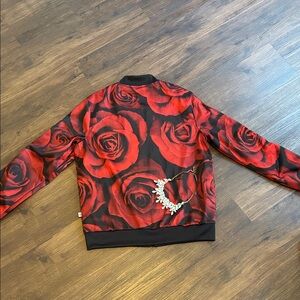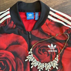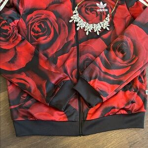 Vibrant Adidas track jacket featuring bold ROSE design.